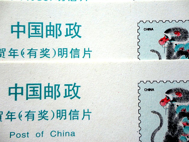 92猴贺年有奖邮资片,"有"字左侧有一明显绿点十下已处长一长胡子.3枚