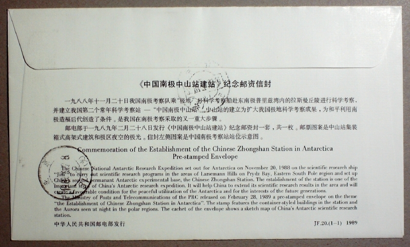 JF20中国南极中山站建站纪念总公司首日本埠挂号实寄封【本埠少】