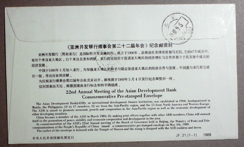 JF21亚洲开发银行理事会年会纪念总公司首日本埠挂号实寄封【本埠少】