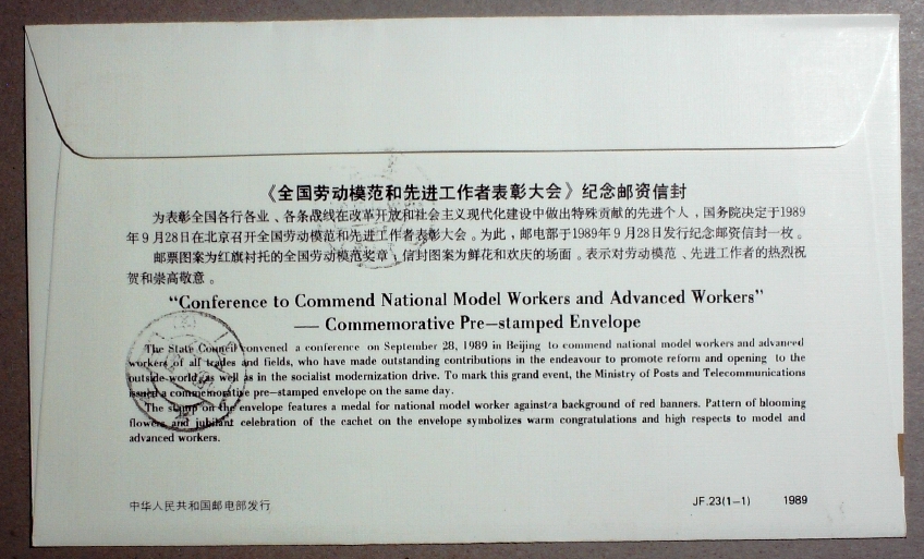 JF23劳模先进工作者表彰大会纪念总公司首日本埠挂号实寄封【本埠少】