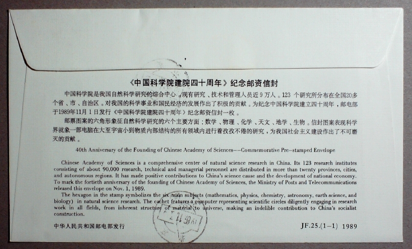 JF25中国科学院建院四十周年纪念总公司首日本埠挂号实寄封【本埠少】