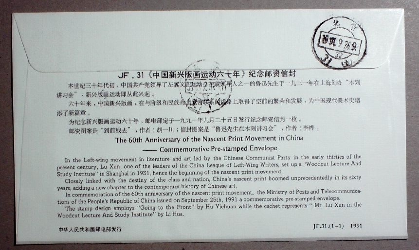 JF31新兴版画运动六十周年纪念总公司首日本埠挂号实寄封【本埠少】