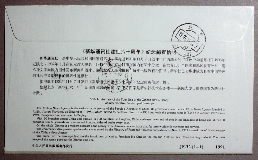 JF32新华通讯社建社六十周年纪念总公司首日本埠挂号实寄封【本埠少】