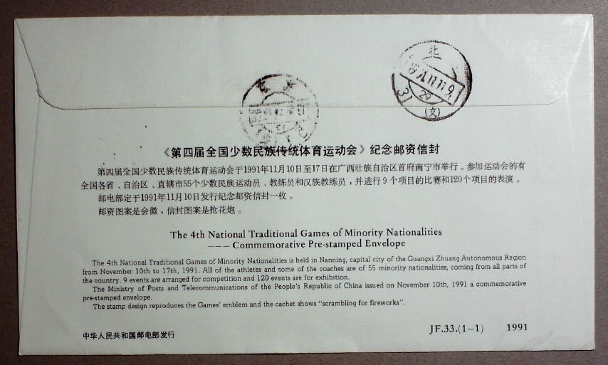 JF33第四届少数民族运动会纪念总公司首日本埠挂号实寄封【本埠少】