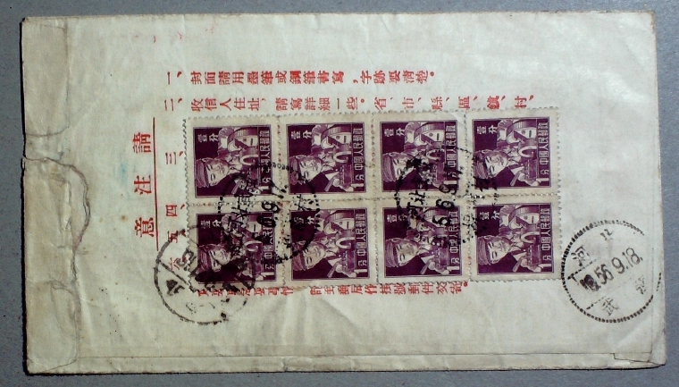 1956年贴普8 1分8方连河北吴强堤南村寄河北保定邮制封实寄封一枚