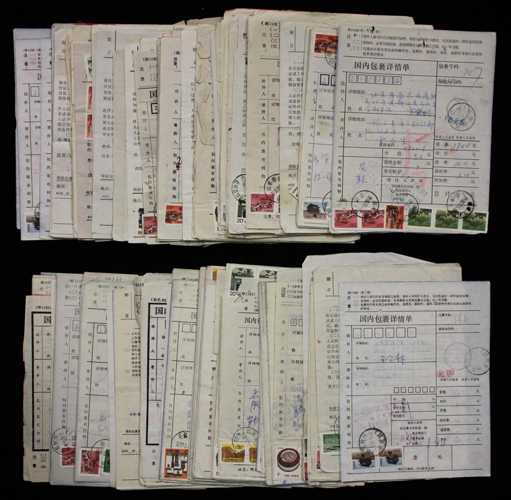 2000年前后贴民居、长城等票各地包裹单100张(第二组)
