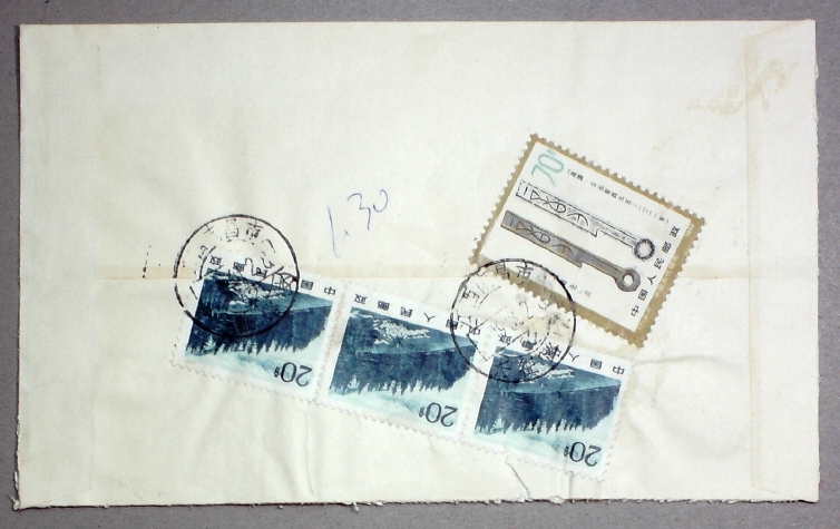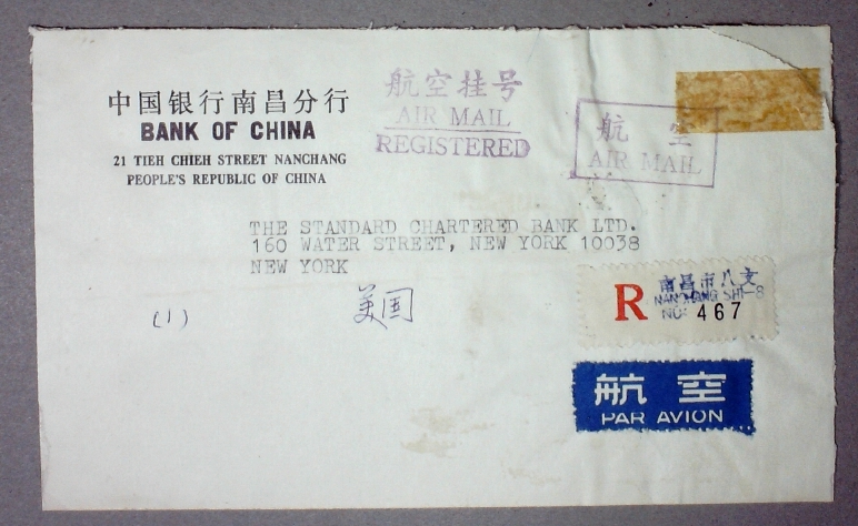 1984年贴T71钱币70分及普22 20分江西南昌长征路寄美国航空挂号实寄封一枚