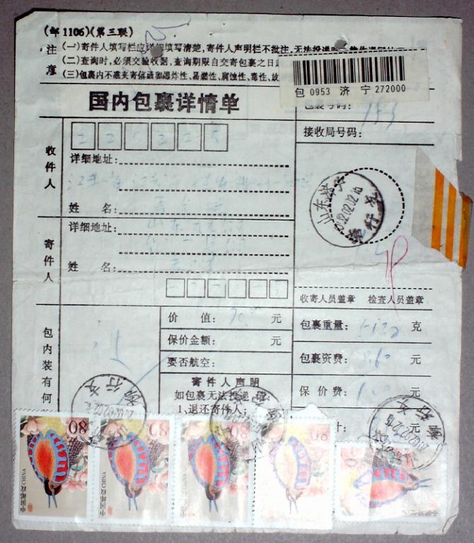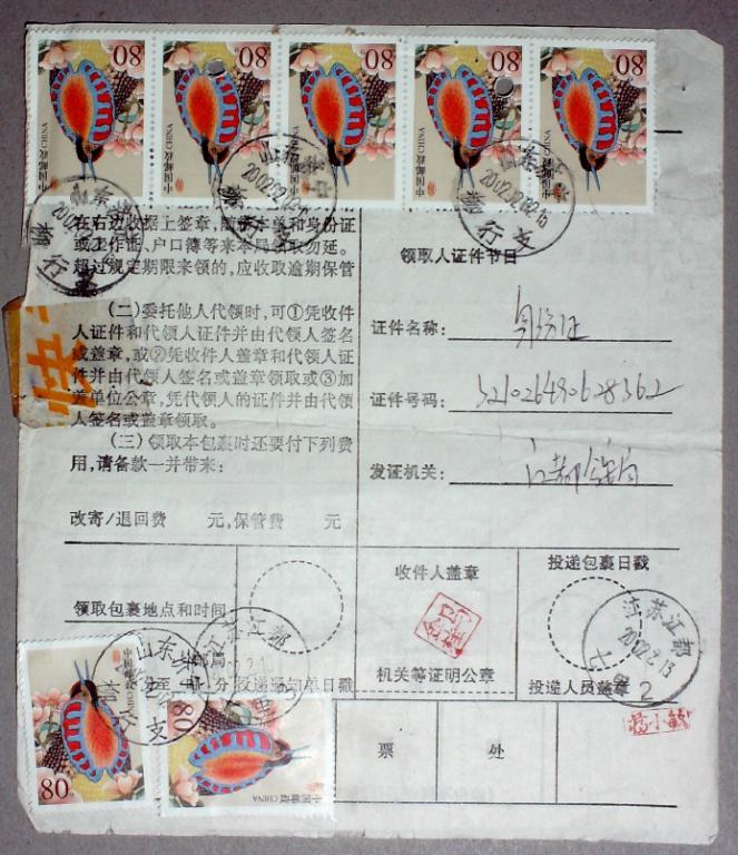 2002年贴普31中国鸟多枚发行次日包裹单一件