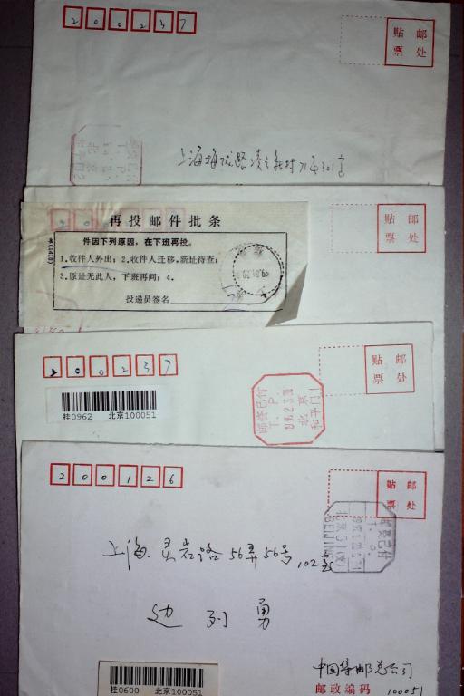 90年北京八角邮资已付戳实寄封4枚(不同戳式)