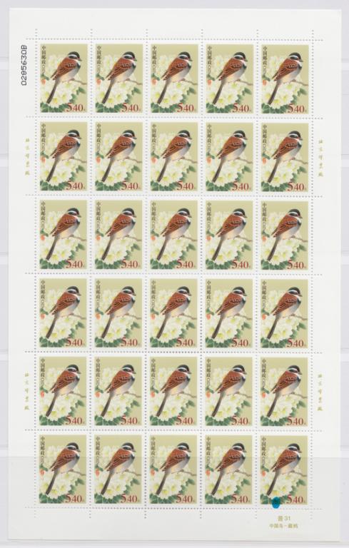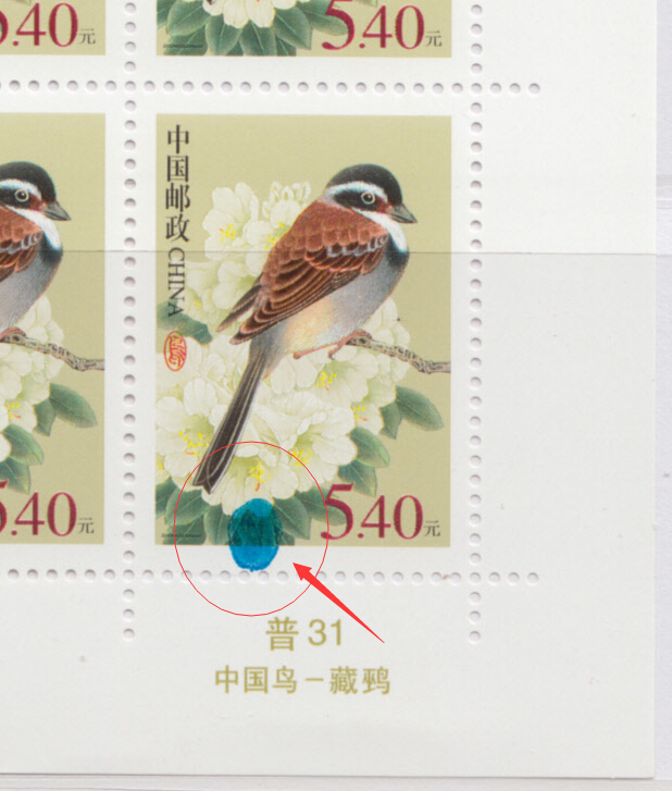 5.4元中国鸟7B大色污新版票一件(版号0285630B)