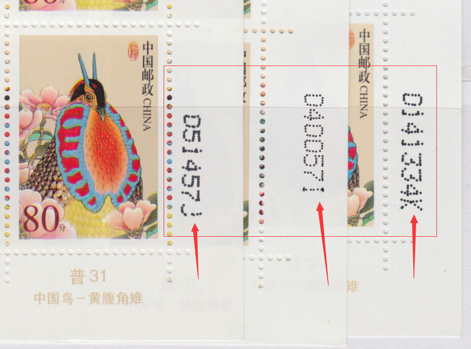普31鸟80分6I、6J、7K三种不同喷码版票面值起拍!