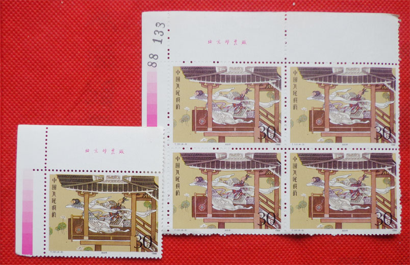 T131 30分 左上角厂铭方联 颜色变体 版号88 133