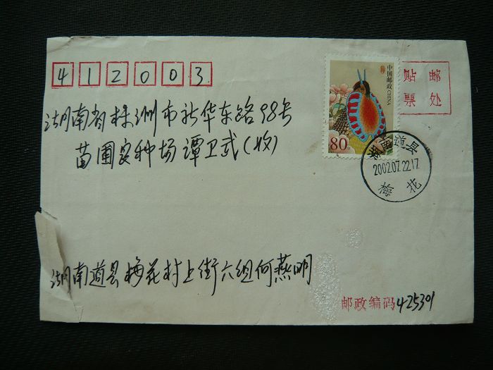 半喷码票 普31-80分 02年2月发行当月 云南嵩明实寄封
