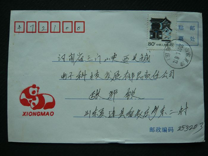 普26-80分 套色移位实寄封 黑灰色移 01年山东