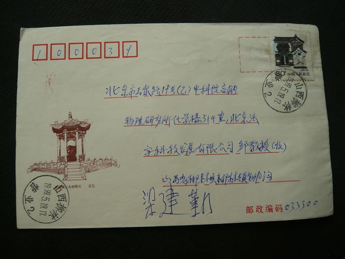 普26-80分 套色移位实寄封 96年山西实寄封 蓝色左移