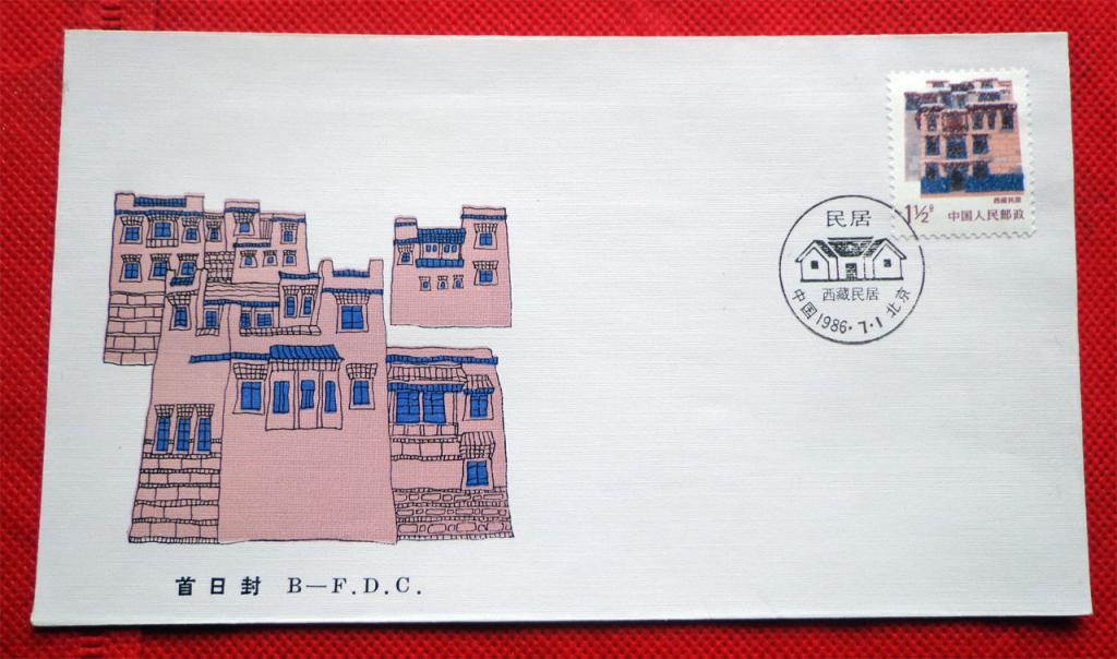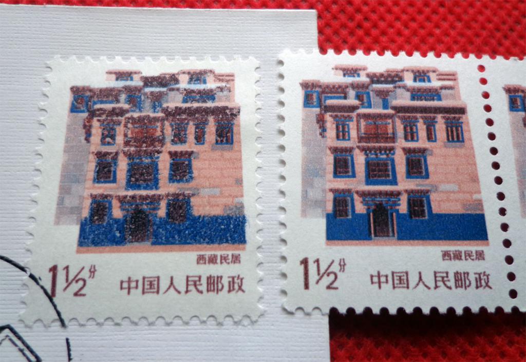 一枚西藏民居首日封印刷变体