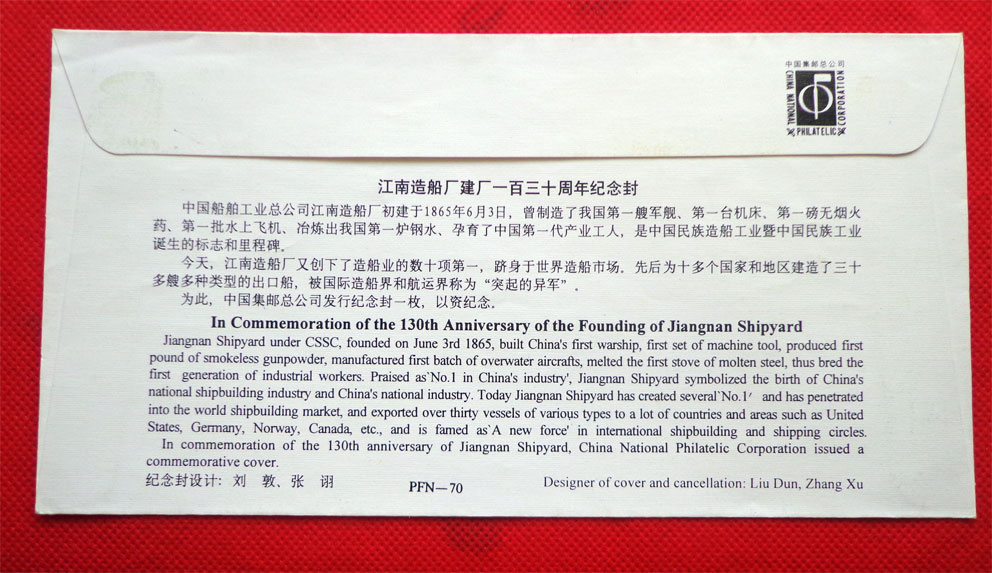 江南造船厂建厂130年 总公司 唯一带纪念张邮品