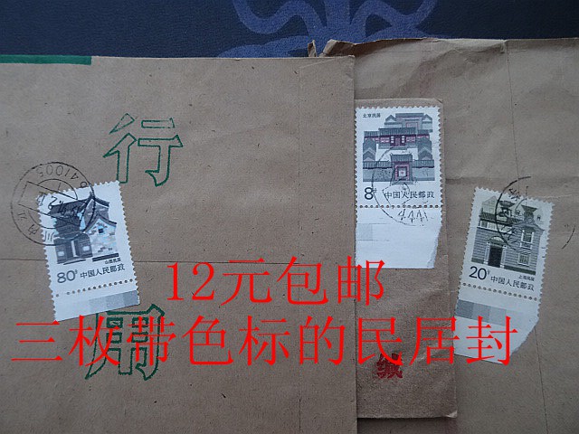 三枚民居带色标实寄封(前帖之补图)前帖作废勿拍