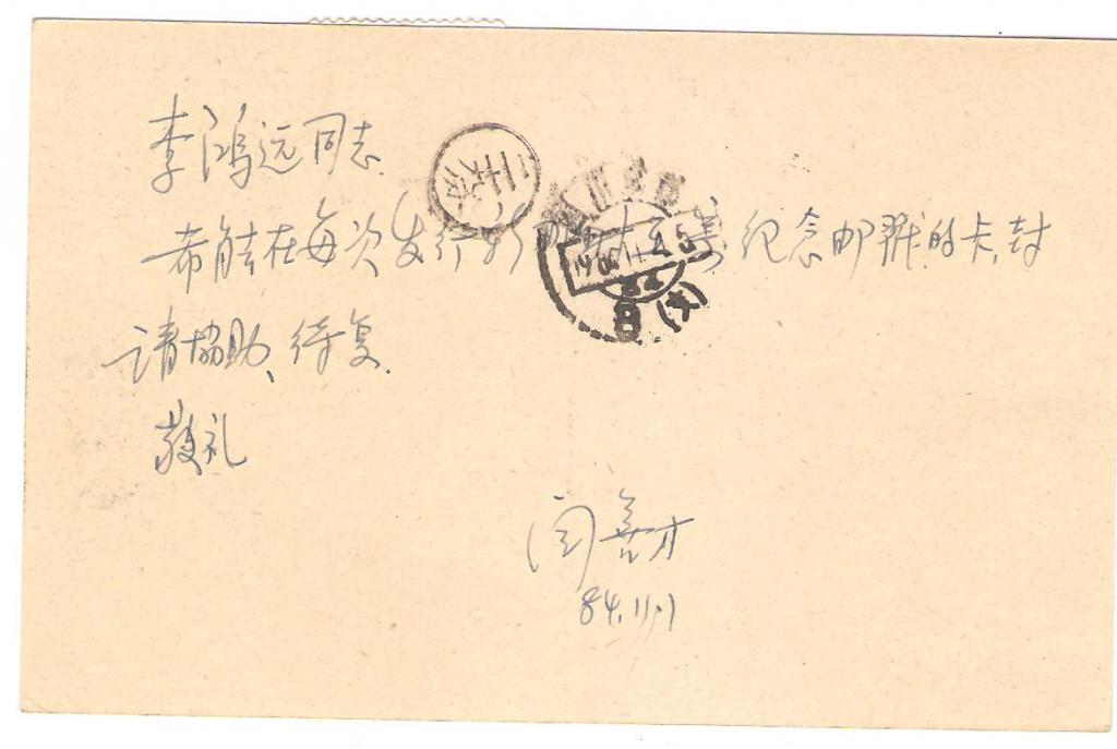 普14(1-1958)北京寄成都 盖北京寅1981.11.1日始发戳,另(盖四川成都1986.11.4日到达戳