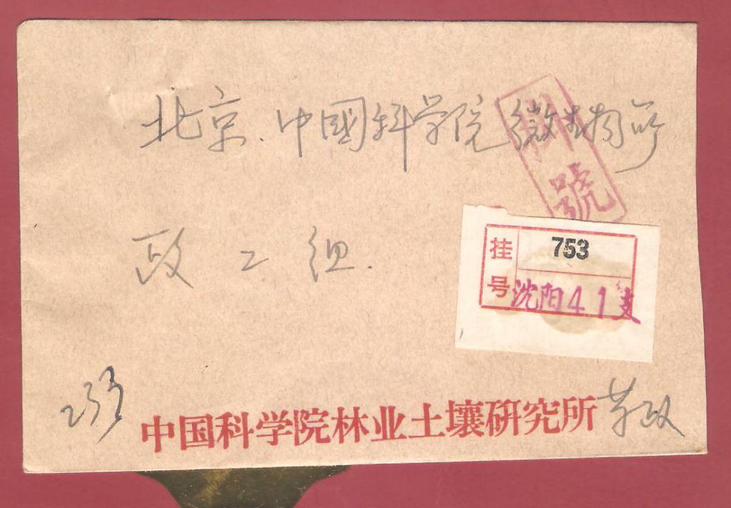 沈阳寄北京挂号信:贴普无号20分——空中有飞鸟?