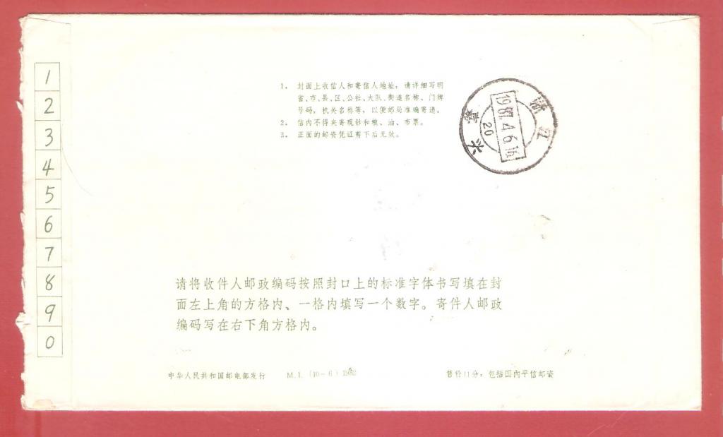 M1.(10-6)挂号信实寄封。