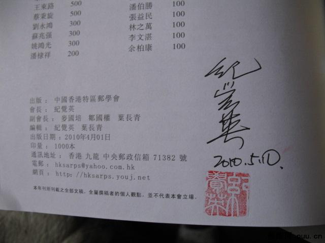 《香港特区集邮年刊2009》编辑签名本