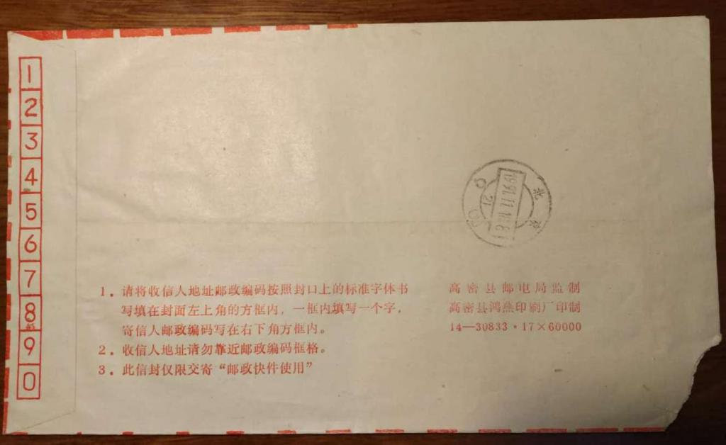1991年山东高密销“快件”戳快件实寄封一枚