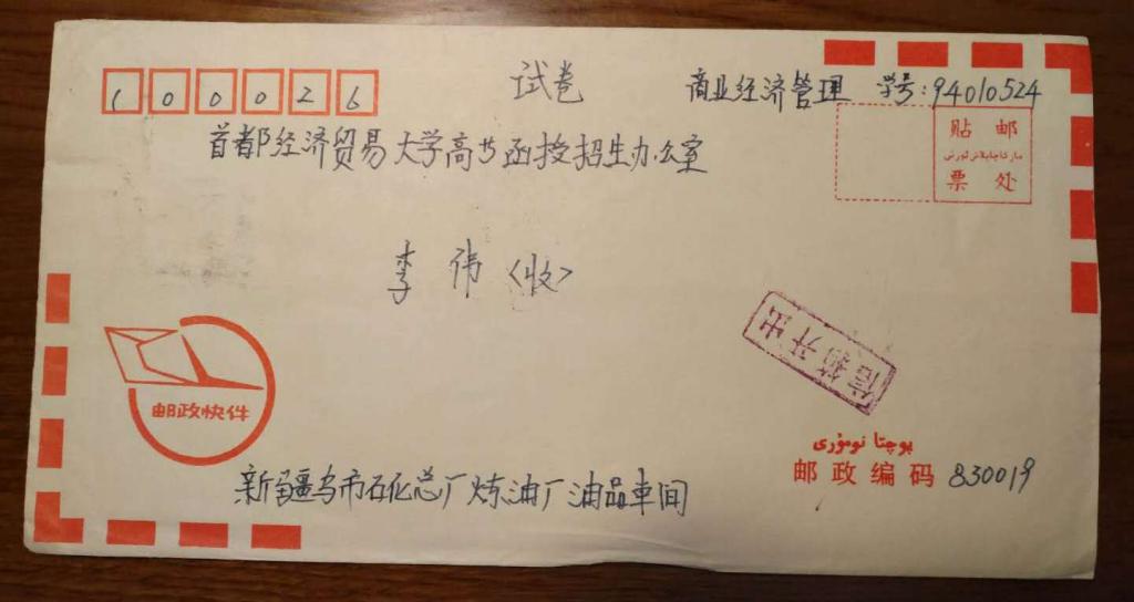1996年乌鲁木齐寄北京信箱开出快件实寄封一枚