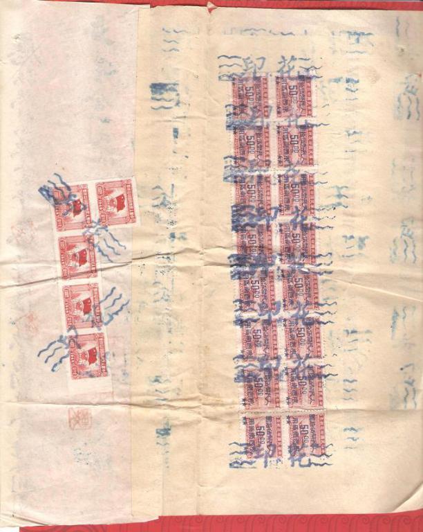 贴球旗图1000元103枚混贴农工图改值50元16枚收据