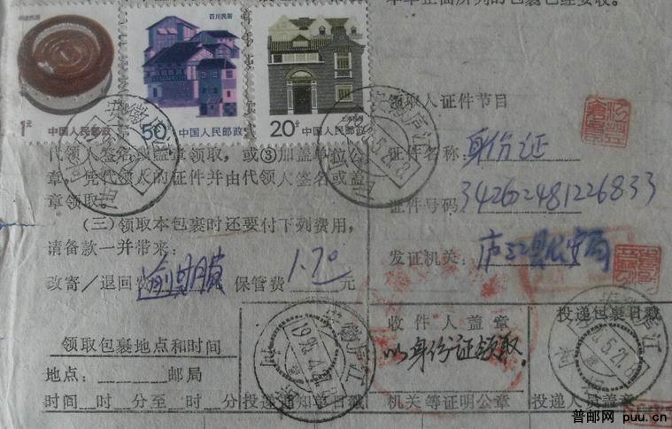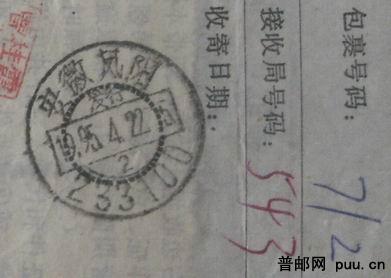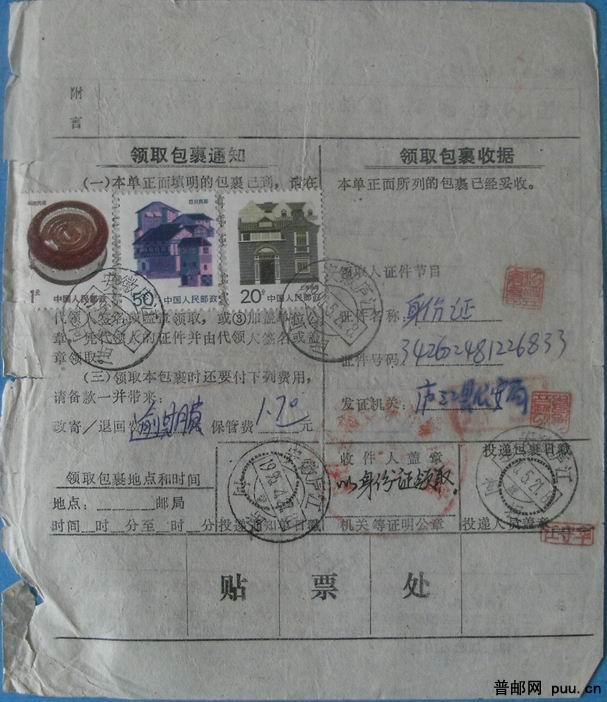 上月牙“发行”戳+邮资已付戳+贴票3枚全部移位 包单