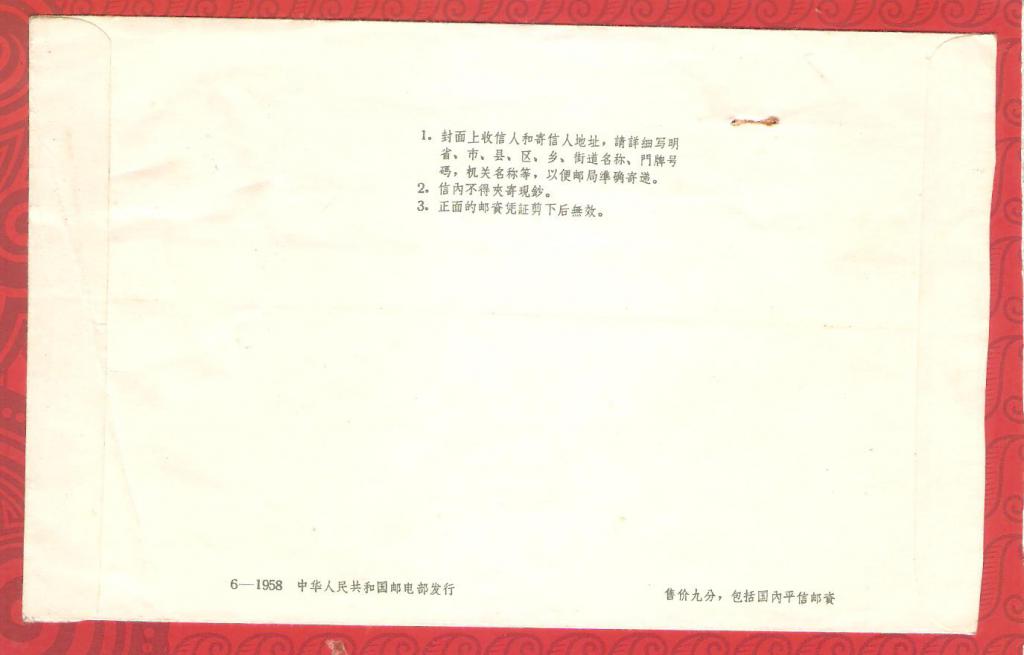 普9天安门图邮资实寄封(6—1958) 一个