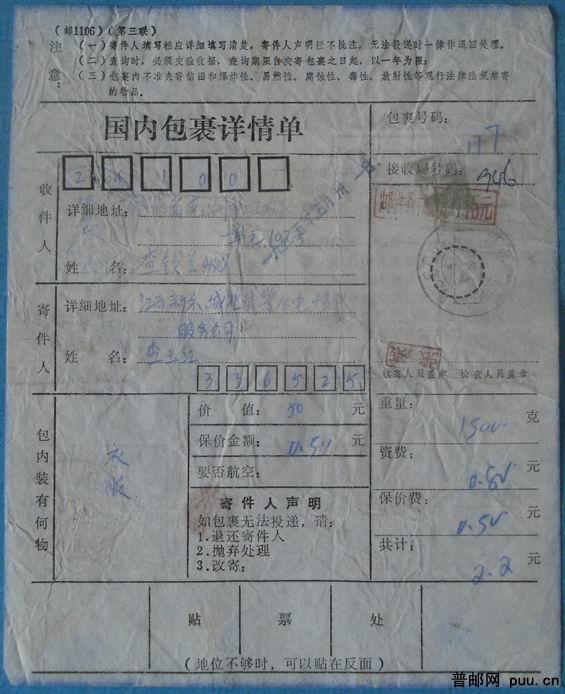 江西新余“附加费”戳 包裹单