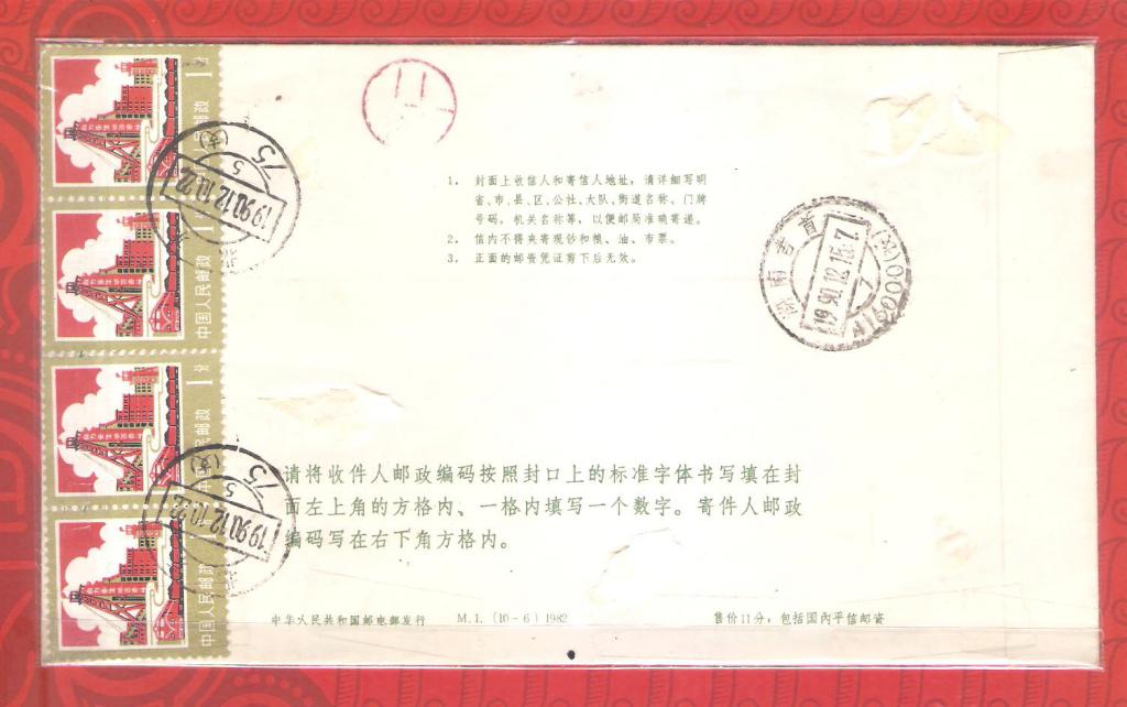 M1(10-6)挂号实寄封一枚(双戳清)。请付挂号信邮资5元