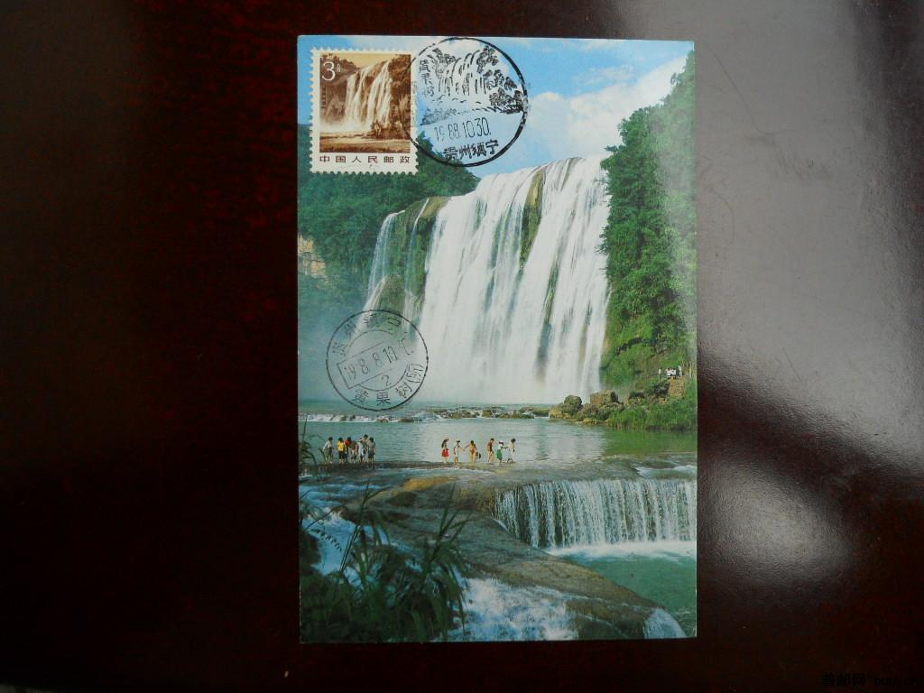 R22 3c 贵州镇宁黄果树日戳 风景戳 片