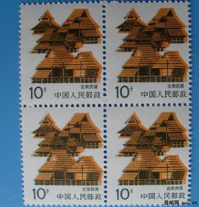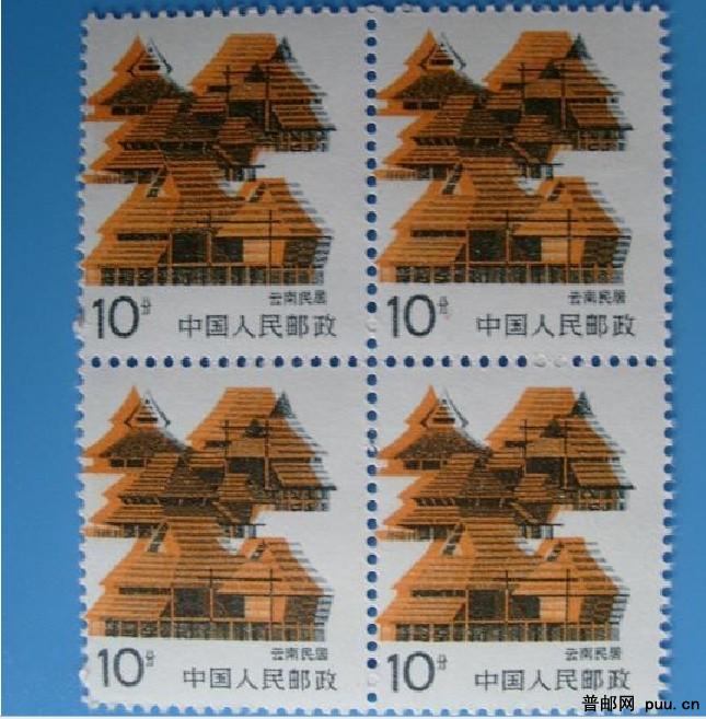 普23民居10分云南民居左右套色大移位+齿孔大移位变体四方联各一
