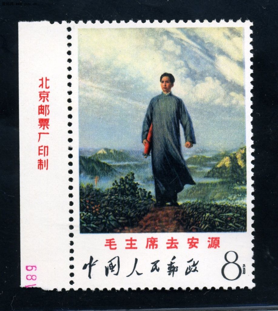 1968年8月1日,中国邮电部发行《毛主席去安源》邮票一套1枚,面值8分。这是“文化大革命”开始后印制的第12套邮票,该邮票图案以同名画作为题,总编号为“文12”。