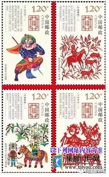 2000年发行的《春节》特种邮票·迎新春 《儿童歌舞》编号邮票 《壬申年》特种邮票 剪纸也叫剪花、剪画,是我国民间传统装饰艺术的一种,具有单纯、明快、朴实的特点,在现实生活中应用非常广泛,贴用的地方不同则可叫出不同的名称:贴在窗户上叫“窗花”,贴在门楣上叫“门贴”,春节期间贴在门窗对联横批下的则叫“挂钱”或“挂帘”,其他则有“鞋花”“枕花”“伞花”以及梳妆镜上的“喜花”等。 剪纸在我国有着悠久的历史。《史记》中就载有“剪桐封弟”的故事,记述周成王姬诵用梧桐叶剪成玉圭图像,赠给他的弟弟姬虞。1959年在新疆曾出土过南北朝时期的团花剪纸“对马”和“对猴”。汉唐时我国民间妇女有用金银箔和彩帛剪成方胜花鸟贴在鬓角为饰的风尚。宋时由于剪纸的盛行,已经有了专业剪纸艺人和剪纸手工业。 剪纸艺术发展到今天,种类繁多,有黑白剪纸、彩色剪纸、套色剪纸、分色剪纸、刻金彩衬剪纸等。就其创作和表现的题材和内容来说,基本形成两个体系。一是传统的民间剪纸,是劳动人民用来表达自己情感、理想和意愿的艺术创作,取材多为五谷丰登、六畜兴旺、花草鸟兽、集邮门户网讯瓜果鱼虫、民间故事、历史人物、戏剧脸谱以及吉祥图案等等﹔另一个是在传统剪纸基础上,超出原来仅为装饰作用的范围,用以反映新事物、歌颂新生活的新题材剪纸。在我国发行的邮票中就有表现剪窗花、贴窗花为内容的邮票画面。2000年2月5日发行的《春节》特种邮票,其中第一枚“喜迎春”,图案以装饰画技法设计,邮票画面是一位妇女跪在窗前剪窗花,一位妇女则站在窗前贴窗花的喜庆场面,以此表达出“喜迎春”的主题。 剪纸作为艺术百花园中的一朵奇葩,在我国邮票图案设计中应用也非常广泛。1959年1月1日我国发行了一套专题《剪纸》的特种邮票,全套4枚,图案分别为“骆驼”“石榴”“公鸡”和“戏剧人物”,是一套典型的民间传统剪纸邮票。2010年8月16日发行的《民间传说——牛郎织女》特种邮票,这是采用民间剪纸的艺术形式设计、表现民间故事的一套邮票。1973年6月1日发行的《儿童歌舞》编号邮票,全套5枚,图案分别为汉、蒙古、藏、维吾尔和朝鲜5个民族的儿童歌舞剪纸。2012年7月1日发行的《城乡居民社会养老保险制度全覆盖》纪念邮票,全套一枚,图案为一盏宫灯造型的剪纸。宫灯中一对开怀而笑的老年夫妇以及作为背景的新房和农村风貌,反映了城乡居民社会养老保险制度全覆盖后,老年人生活无忧的社会图景,体现了我国城乡居民社会养老保险制度推行的重大成果和重要意义。后面两套都是反映新事物、歌颂新生活的新题材剪纸邮票www.xjiyou.com 由于传统的民间剪纸有着浓郁的吉祥喜庆气氛,因此在我国近些年发行的生肖邮票中剪纸艺术被多次应用。在第二轮12套24枚生肖邮票中的剪纸图案分别有1992年《壬申年》的“猴桃献瑞”和“喜鹊登梅”、1993年《癸酉年》的“雄鸡报晓”和“四季吉祥”、1994年《甲戌年》的第二枚“祥瑞兴旺”、1995年的《乙亥年》的第二枚“喜迎新春”、1997年的《丁丑年》的“金牛奋蹄”和“牛耕年丰”、1999年《己卯年》的第二枚“吉祥如意”、 2001年《辛巳年》的“祥蛇祝福”和“祥运普照”以及2003年的《癸未年》第二枚“三阳开泰”等。这些邮票中剪纸图案有的直接取材于民间,有的则是在原作基础上再创作。如“雄鸡报晓”一枚,图案选用的是河北省献县本斋乡邓家庄蔡兰英老人的剪纸“百鸡图”中的一幅,而“金牛奋蹄”一枚,图案是根据山东高密民间艺人齐秀花的剪纸“媳妇骑牛”再加工创作而成的。另外,我国发行的个性化服务专用邮票中也有吉祥喜庆的剪纸图案,即2005年11月6日的《岁岁平安》和2005年11月11日的《喜上眉梢》。 作者:党玉占