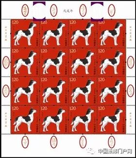 1。甲骨文元素继续运用于《戊戌年》生肖邮票版式一的边饰,设计上自“狗”开始,顺时针展示了十二生肖的甲骨文字,“狗”字为红色,其余为金色,寓意鸿运当头。