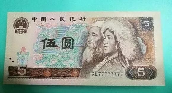 五元纸币,大家还熟悉吗,这就是我国发行的面值五元的人民币,现在我们正在使用的就是第五套人民币的五元纸币,但是在前一套人民币的五元纸币,已经成为一种新型收藏品了,这就是我国四套人民币的五元纸币。第四套人民币是发行于八九十年代的一套人民币,为我国经济发展做出巨大贡献,而现在已经不多见了。 五元纸币 这张五元纸币,采用的是古币水印,在第四套人民币中的五元纸币是一个罕见的仅有一个版本的五元纸币,毕竟在第四套人民币中,大多数都发行了几个版本,而五元纸币却是一个仅有的几个只有一个版本的人民币。在八十年代,使用频率最高的币种就是一元纸币了,使用频率低也就意味着发行数量的减少。 八同号 但是,使用频率低还有个另样的特点,那就是存世量很大,相应来说,收藏价值就要低了很多,但是呢,如果是这种五元纸币,收藏价值就要大不一样了,这就是五元纸币中的八同号,在第四套人民币中,都是发行的二冠号,因而后面就会有八位数字,这八位数字会组成一些珍贵的吉祥号码,比如尾号八同。 八同号,在尾同号的收藏中是顶级收藏,每个二冠号之下,仅有十张,数量堪称稀少,而且品相如此之新的纸币,这张五元纸币,就是一张八同麒麟号,收藏价值可高达五万元,收藏价值翻了上万倍,看看你手里有吗?