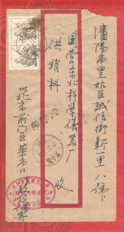 贴普6:1600元双连双挂号(两戳清)实寄封一枚【拍卖】