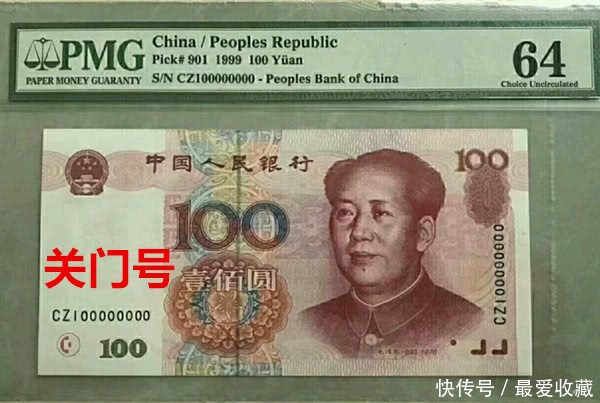 尾号为99999999的麒麟号是该冠字之下的倒数第二张纸币,而最后一张纸币就是100000000,也就是关门号了,某个冠字号下,有开门号,也有关门号,都是仅仅只有一张,相比于十张的麒麟号和三张的八顺号,开门关门号更加下稀少。