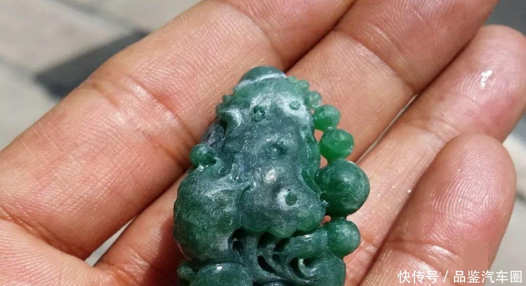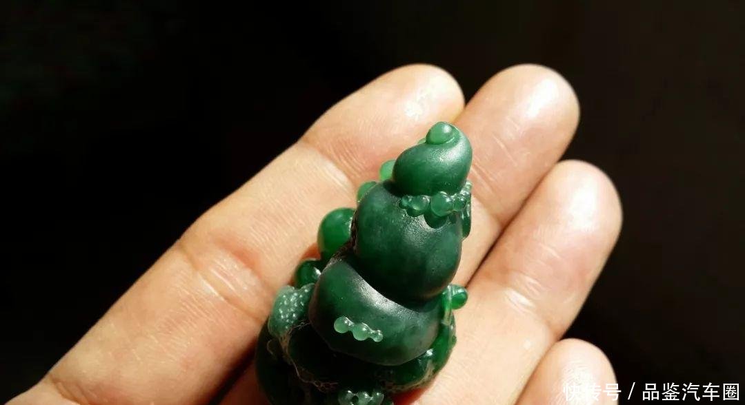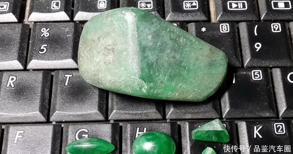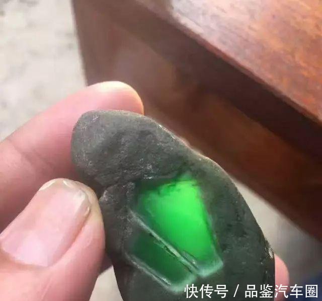 今天给大家分享一个案例,是货主在网上花了400块买的公斤料,刚入行的朋友应该知道什么是公斤料,公斤料里面的翡翠原石是很难升值的,一般几万个人中购买这种原石能出好货的不到10个,恰好货主就是其中一个。 这块摆在地上的原石是莫湾基场口的黑石头,重4.4kg,块头也算非常大了,最难玩的原石莫过于黑石头,非常大的几率一刀下去黑黑的一片什么都没有。 再来看下这块原石的皮壳表现,形状恰好能取3-5个手镯,皮壳上有疑似裂的痕迹,其实就是种老裂不进。 打灯观看,种水水长,但是不能从打灯的表现来确定它好不好。 原石切开后,水沫共生,底脏底灰,彻彻底底的跨了。 货主仔细观察一番后,发现切面有色的表现,打算在赌一刀。 再切一刀后,果然猜中了!一条绿色,已经涨了! 打灯看情况非常乐观,接下来就是把这块小绿给弄出来。 取出来后,发现色非常的阳,有色的部位有点小,只能做小挂件和界面了。 这块是货主手痒自己在家里磨的,取了两三个小界面。 好奇心满足了,剩下这块大的交给玉雕师来处理。 题材是一个田螺,雕刻完工还没有抛光。 抛光后种水和色都不错,总的来说货主之前是抱着玩一玩的心态来的,没想到切开后会有这么大的惊喜,所以赌石有风险,下手需谨慎!