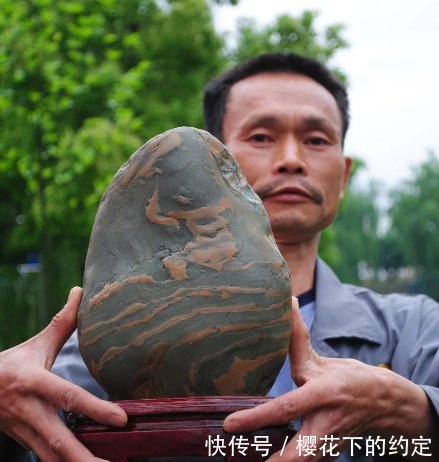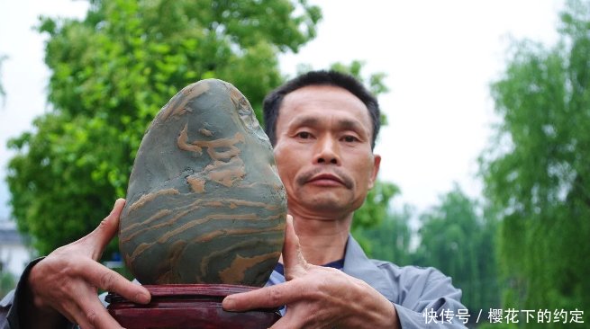 奇石无价,这个道理好多人都懂。在首届贵州青观赏石全国博览会上,一位来自天柱县的农民姚茂成,在展会上公开售卖一块带花纹的石头,要价600万人民币!这个雷人的天价,让参观博览会的眼镜大跌:真亏的他说的出口。且慢!能要出这个价位,可以这石头绝非一般,据行家介绍,它的名字叫贵州青。 这块贵州青大约在6公斤左右,色泽呈青色,石上有橙黄色条纹缠绕,像一个“富”字,也像一个人在水里奔跑。据姚茂成介绍说,这块奇石是他7年前,在大山里无意间捡到的,当时如获至宝,看到图案后,他突发奇想,还给这块石头起了一个贵气十足的名字“富甲一方”! 姚茂成对这块“富甲一方”爱不释手,专门为它请人做了一只底座,便于摆放。听说博览会上征集宝贝,姚茂成就带这块“富甲一方”来了,而且开价600万,不少人好奇,乖乖,难道比黄金还要贵吗? 据行家介绍,贵州青,又称绿玉,安与安顺马场石、罗甸化石、乌蒙磬石合称“贵州四大名石”,属全国珍有石种。 据行家介绍,贵州青,又称绿玉,安与安顺马场石、罗甸化石、乌蒙磬石合称“贵州四大名石”,属全国珍有石种。贵州青出自清水江,尤以天柱县瓮洞镇巨潭村河段所产的石头为佳。贵州青的质感细腻,色彩清、形体秀美、温润平和、清雅淡泊而成为国内外藏界争相收藏的佳品。比较自信的姚茂成,只身来到博览会上,手持宝物,所以敢要出600万的天价来,看来不是没有道理啊。博览会当天,人头攒动,都来争相观看奇石巨宝。不知道姚茂成要价600万的“富甲一方”,得否出手,让我们一起拭目以待吧。