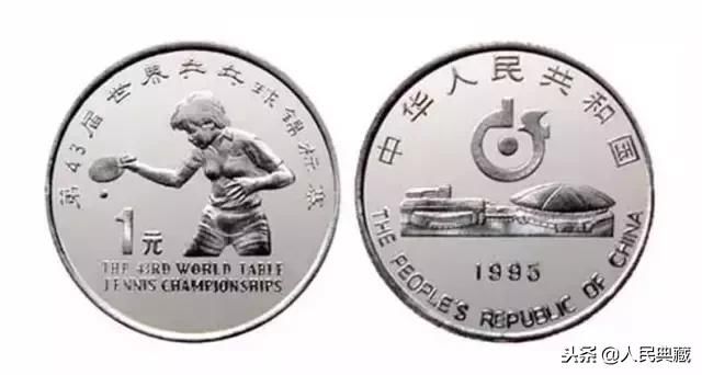 1995第43届世乒赛纪念币发行量:1000W枚,面值1元