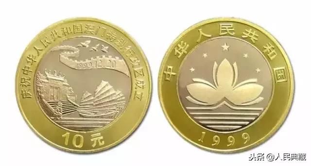 1999澳门回归纪念币发行量:4000W枚,面值10元