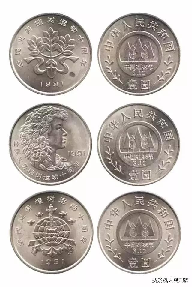 1991全民义务植树运动十周年纪念币发行量:3000W枚,面值1元