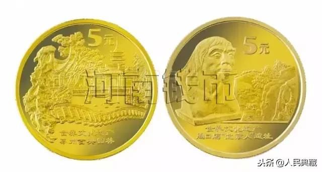 2004周口店北京人遗址及苏州园林纪念币发行量:600W枚,面值5元