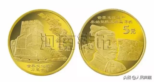 2002万里长城及秦始皇陵兵马俑纪念币发行量:1000W枚,面值5元