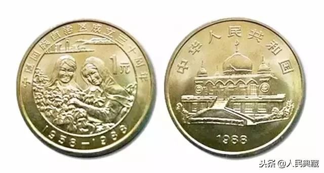 1985新疆维吾尔自治区成立30周年纪念币发行量:450W枚,面值1元