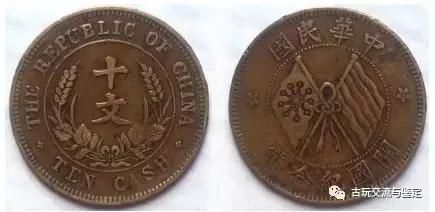 中国民主主义革命的先驱者孙中山就任中华民国临时大总统,并在颁布的“临时大总统令”中提出要“另刊新模,鼓铸纪念币”,随后铸行铜元辅币,以十文面值的为主,在全国大量发行以取代清朝铜元。1914年,铜元正式改称“铜币”,民国发行的铜币与清最大的区别是龙纹被换成了由稻穗组成的嘉禾纹,各省铸造的铜元大多为两面叉的国旗图案。